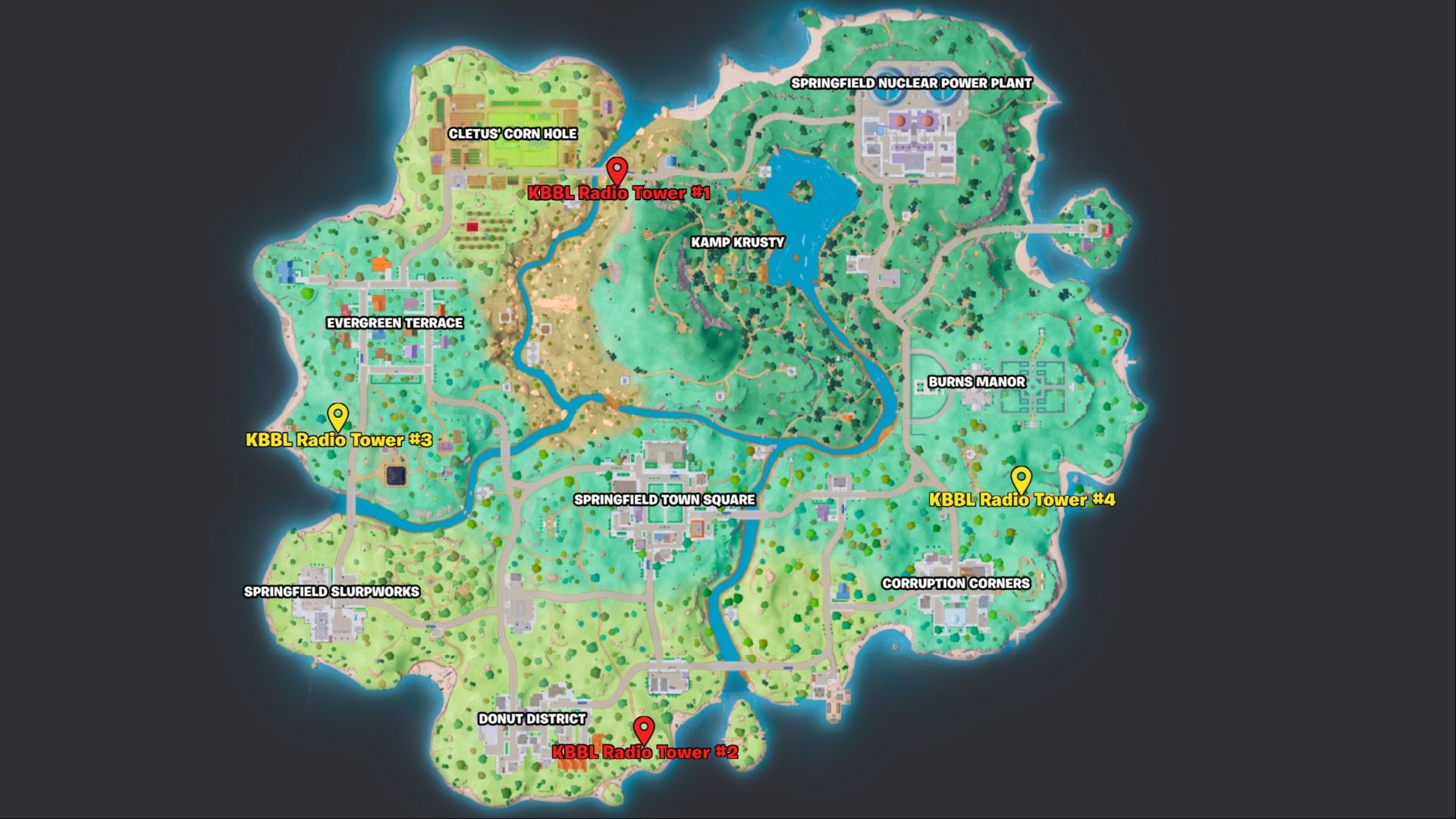 Игроки могут узнать, какие башни открыты, либо просматривая их из Боевого автобуса, либо замечая иконку радиостанции KBBL прямо перед тем, как сжимается второй круг бури.