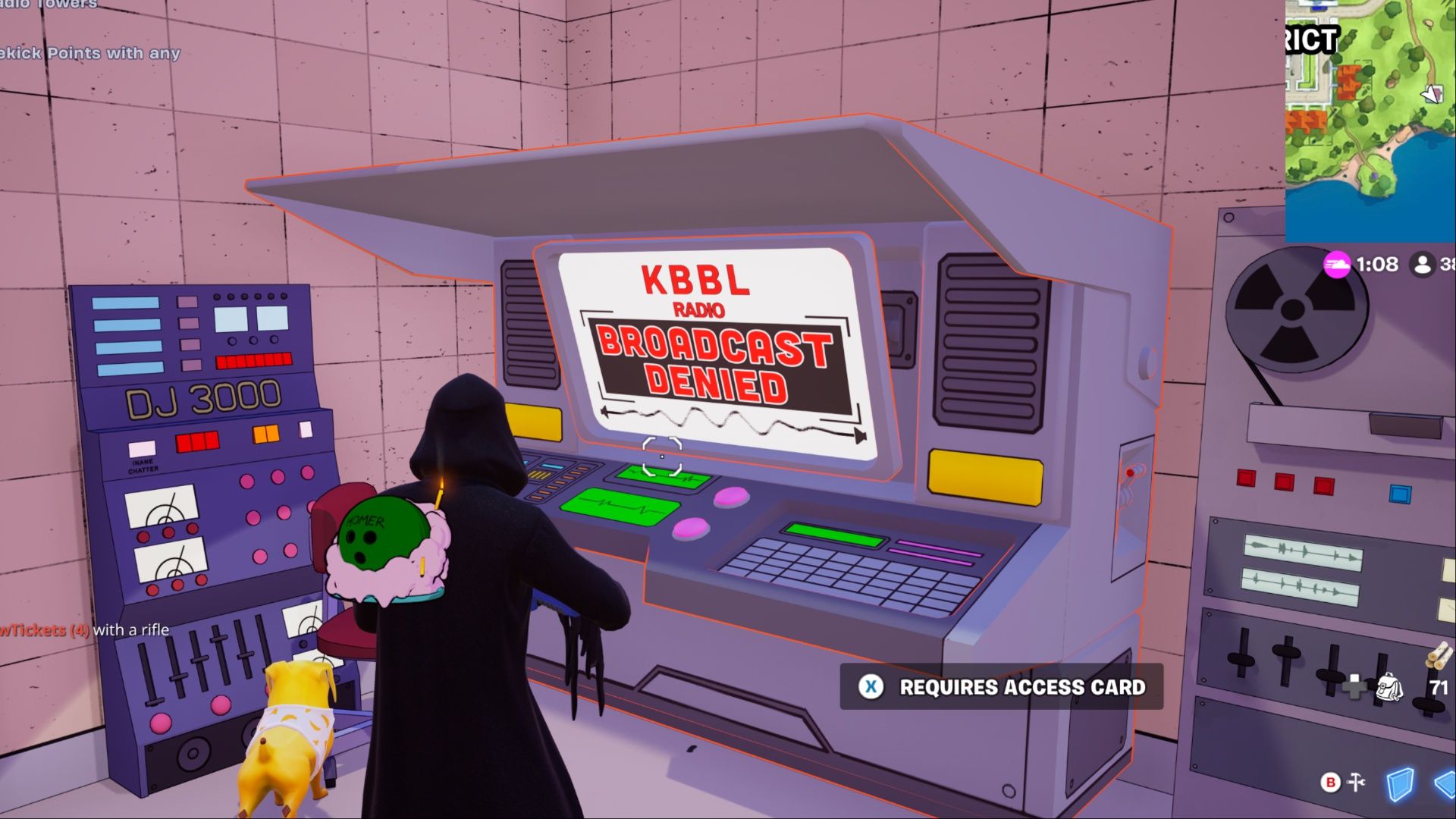 Чтобы попасть внутрь радиовышки KBBL в Fortnite, игрокам нужно найти карту доступа, которую носят враги типа Dober Men. Вам придется подойти к вышке и дождаться появления этих врагов.