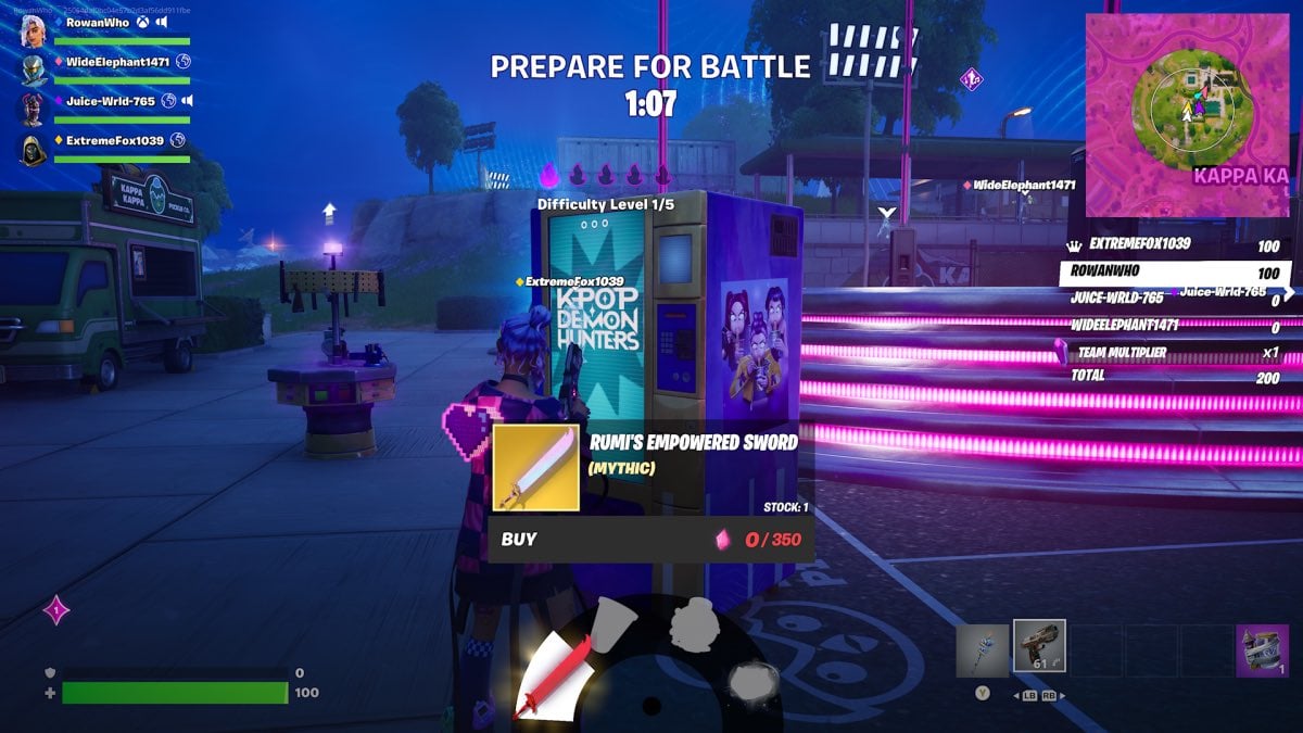 Как только сумасшедший темп замедлится и ваша команда подготовится к продолжению, найдите KPop Demon Hunter Vending Machine и купите свой Empowered Sword.