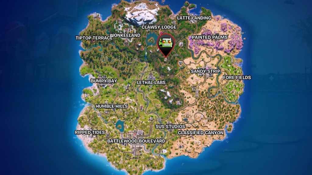 Чтобы найти это место, откройте свою карту во время раунда и увеличьте масштаб на лесистую область прямо под Clawsy Lodge. Найдите небольшое серое и белое здание и поставьте там маркер. Вы поймете, что нашли правильное место, если увидите здание с синей и оранжевой вывеской мастерской. Название Landmark также появится в правом верхнем углу экрана, рядом с мини-картой, когда вы войдете в эту область.