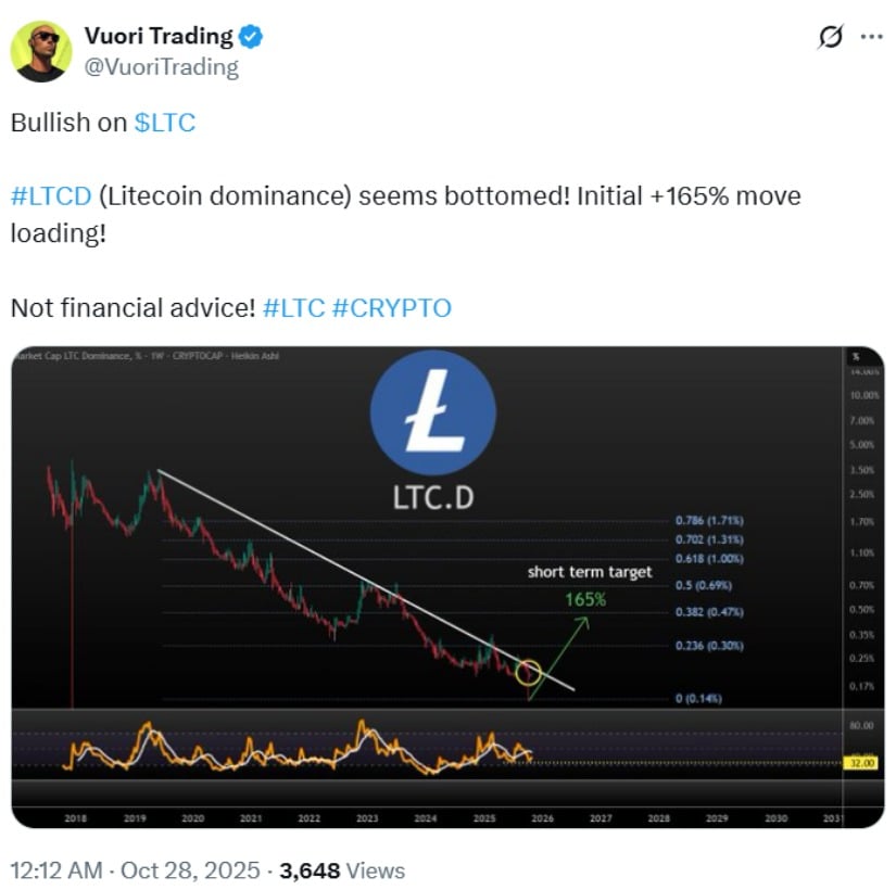 Метрики доминирования и тренды объемов торгов — это крипто-эквивалент гороскопа: оптимистичные, но не всегда точные. Краткосрочная волатильность похожа на навязчивого бывшего партнера: она не оставит вас в покое. Но с институциональным интересом, возможно, LTC наконец-то сможет развестись. 🤝⚖️