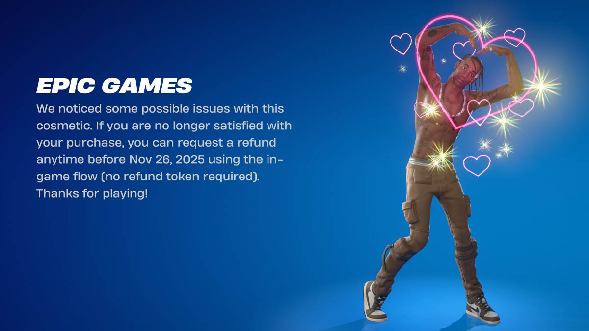Многие игроки получили сообщение после покупки этого косметического предмета, в котором говорится, что если они недовольны своей покупкой, они могут запросить возврат средств в любое время до 26 ноября 2025 года. Возврат средств можно запросить непосредственно в игре и не требует специального токена.