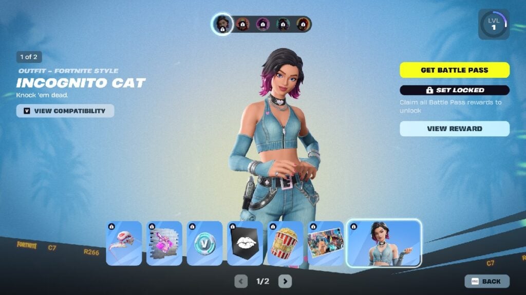 Каждый костюм или скин имеет свою специальную страницу, демонстрирующую связанные предметы, такие как кирки, украшения для спины, обертки для оружия и эмоции. Вы также можете открыть дополнительные стили для этих костюмов, выполняя задания позже в сезоне или в определенных игровых режимах.